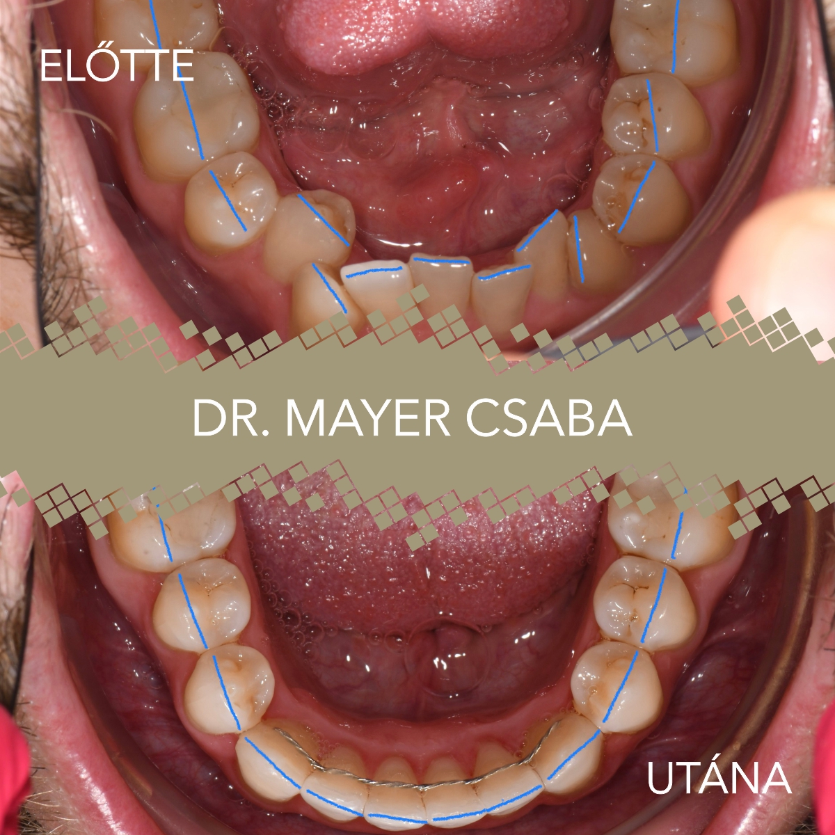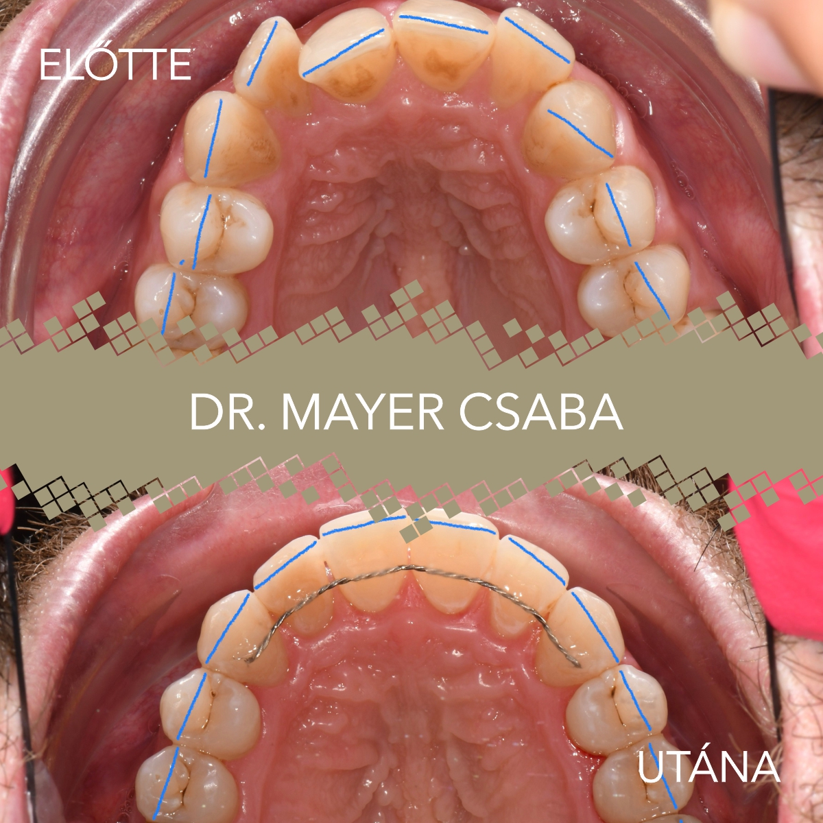 Nagyon fontos, hogy a fogszabályozó kezelés nem ér véget azzal, hogy abbahagyjuk a fogak mozgatását. A fogszabályozó kezelésnél, az utolsó fázisra, a helybentartó fázisra nagyon nagy hangsúlyt kell fektetni, mert mi itt az Optimum Fogászatnál annak vagyunk a hívei, hogy a fogszabályozást egyszer kell megcsinálni, de akkor jól. A fogszabályozó kezelés az aktív fogmozgatás után a helyben tartással folytatódik. Helyben tartáshoz éjszakára szoktunk adni kivehető síneket, illetve előszeretettel javasoljuk a pácienseknek, hogy a metszőfogak hátsó felszínére egy vékony drótot ragasszunk fel és ezáltal az esztétikai zónát nagy biztonsággal, pontosan helyben tudjuk tartani.